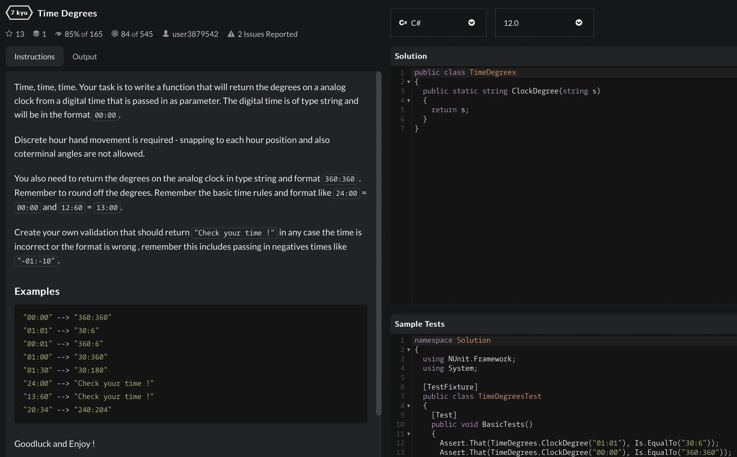 Create an account on Code Wars so you can follow along, have your progress saved, and earn honor points! This enables you to code right away from your favorite browser- no downloads required.