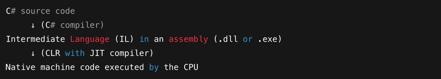 The Common Language Runtime (CLR) is at the heart of .NET. It’s the component that executes your code. Here’s what happens behind the scenes: