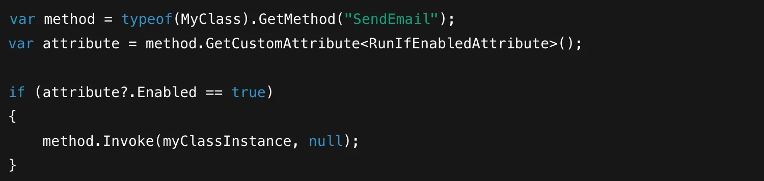 3. Reflection Can Be Expensive. Frameworks that read attributes heavily (like ASP.NET) usually do it once at startup and cache the results. If you’re writing your own system that scans attributes, try to avoid calling reflection repeatedly during runtime.